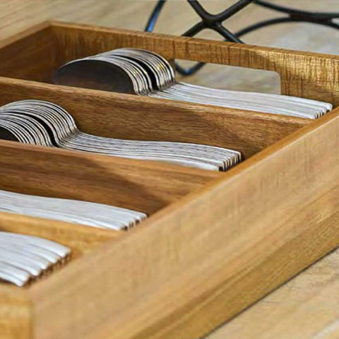 Bandeja para talheres em madeira 54x34x10cm, 4 espaços